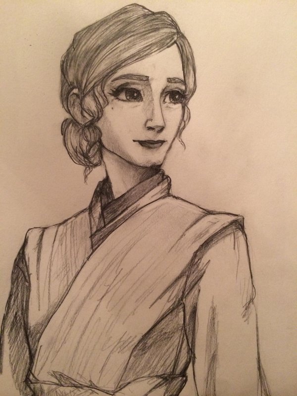 I really enjoy writing Kenara. It’s probably because she is very much an Obi-Wan Kenobi kind of character, and he is without a doubt my favorite character in Star Wars. Although they share a lot of character traits, situationally I’ve made Kenara quite different from him: She’s a middle-aged mother of teenaged girls, instructing them in her mystical warrior ways. That’s something that fundamentally brings a very different feel to the story compared to the Luke – Obi-Wan dynamic. And although Kenara is a pragmatic traditionalist in the same vein as Master Kenobi, her traditions differ from his. This is obvious in the fact that she does not show the (prequel introduced) Jedi prohibition on family-emotional attachments, and likely isn’t required to be celibate by her Order either.