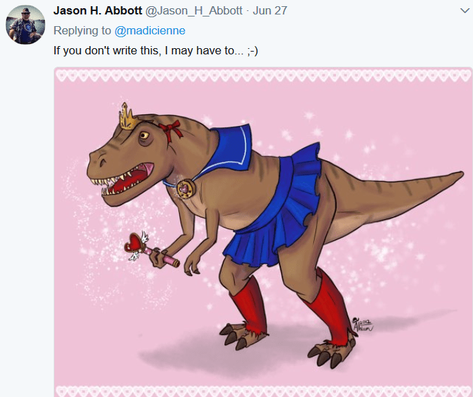 As odd of a concept as it is, I can’t get the thought of a fifteen-year-old girl with the magical power to save the day by becoming a dinosaur out of my head. It definitely has humorous alludes, but after outlining ideas and background for an in medias res short, I can truly see this actually working as a YA tale.