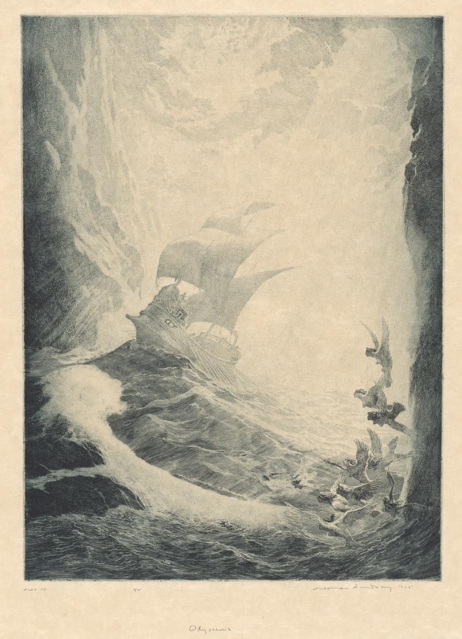 Many of these had fantastical and classical elements. Lindsay was also not shy with the use of the nude form or getting sensuous with it, to the point that his art was occasionally labeled as pornography during his lifetime and some might say the same today. With that in mind, here is a link to an excellent if NSFW gallery of his work for those that are curious.