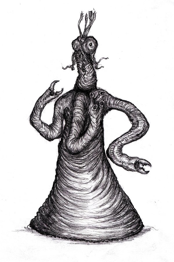 Those of The Great Race of Yith are a little complicated to describe. They make their appearance in the 1936 novella The Shadow Out of Time, and like most of Lovecraft’s creations, they are extraterrestrial intelligences that began their existences aeons before humans even evolved. However, the physical form they are known for is not their original one… for what added “Great” to the name of the Yithian race are their tremendous intellectual and psychic abilities that allow them to transfer their minds with other beings.