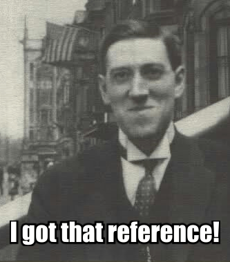 As a fun aside about this project, I’ll pass on that I’ve compiled a list of words favored by Lovecraft in his works. I’ve been enjoying myself as I slowly work them into the prose, generally only once, to give it a bit more of his verbal “feel”. ;-)