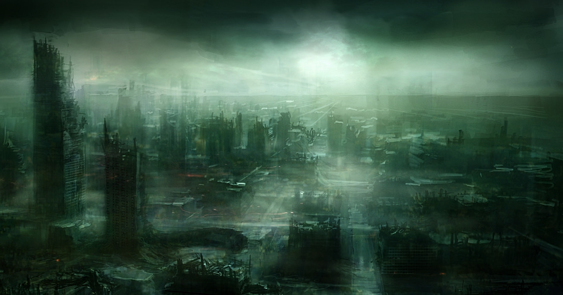 The storm came. Standing in the park, Mariah watched the city — from skyscrapers to pavement — crumble like sandcastles under a gentle shower. Accompanied by screams, civilization drained away while verdant hill and tree replaced sprawling metropolis.