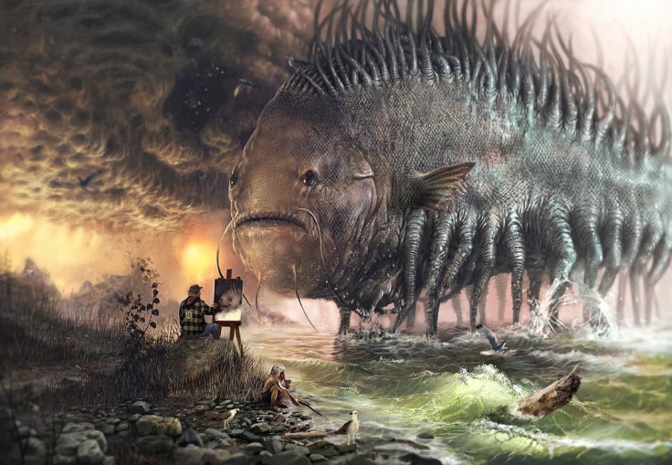 That’s a crazy picture. Why is it that the frowny face is what disturbs me the most about this? I mean, what does that fish have to be sad about?
