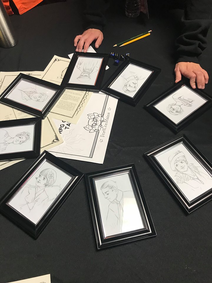My vacation is over as of today, but I had a really good time at PortCon! My four RPG sessions all went great, with packed tables and super happy players afterwards that I made even happier when I surprised them with artwork souvenirs. The con after-party for staffers wrapped-up after 9 pm on Sunday and my wife and I got home totally wiped-out from the convention. My voice, as usual, got blown-out from having to orate at high volume for hours to be heard over the noise of the RPG room while also speaking in character as old fishermen, cultists, Nyarlathotep, squeaky-voiced-teen-stock-character-number-one, a grumpy marionette, and Tank-Tank’s sassy sister, Jet-Jet. But it isn’t shot as bad as in years previous thanks to the addition of some sound barriers at the con that the RPG team will seek to improve further for next year. And as I said to start, I had a great time! :-)