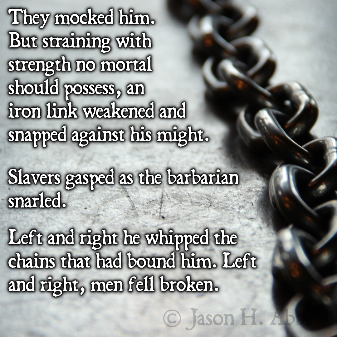 They mocked him. But straining with strength no mortal should possess, an iron link weakened and snapped against his might.