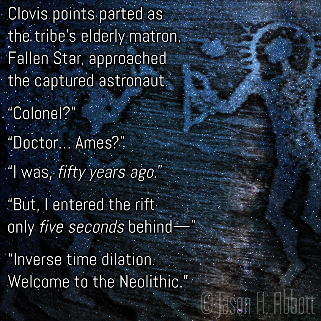 Clovis points parted as the tribe’s elderly matron, Fallen Star, approached the captured astronaut.