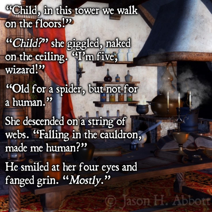She’s cute, curious and smart. I’ve actually got some ideas for her in a longer set of stories where she even has spider-related magic that the wizard helps her learn to use.