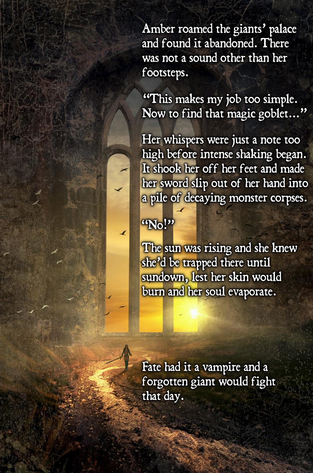 Amber roamed the giants’ palace and found it abandoned. There was not a sound other than her footsteps.