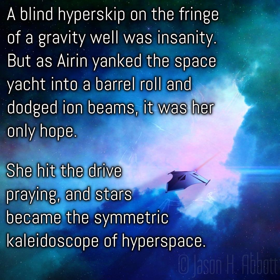 A blind hyperskip on the fringe of a gravity well was insanity. But as Airin yanked the space yacht into a barrel roll and dodged ion beams, it was her only hope.