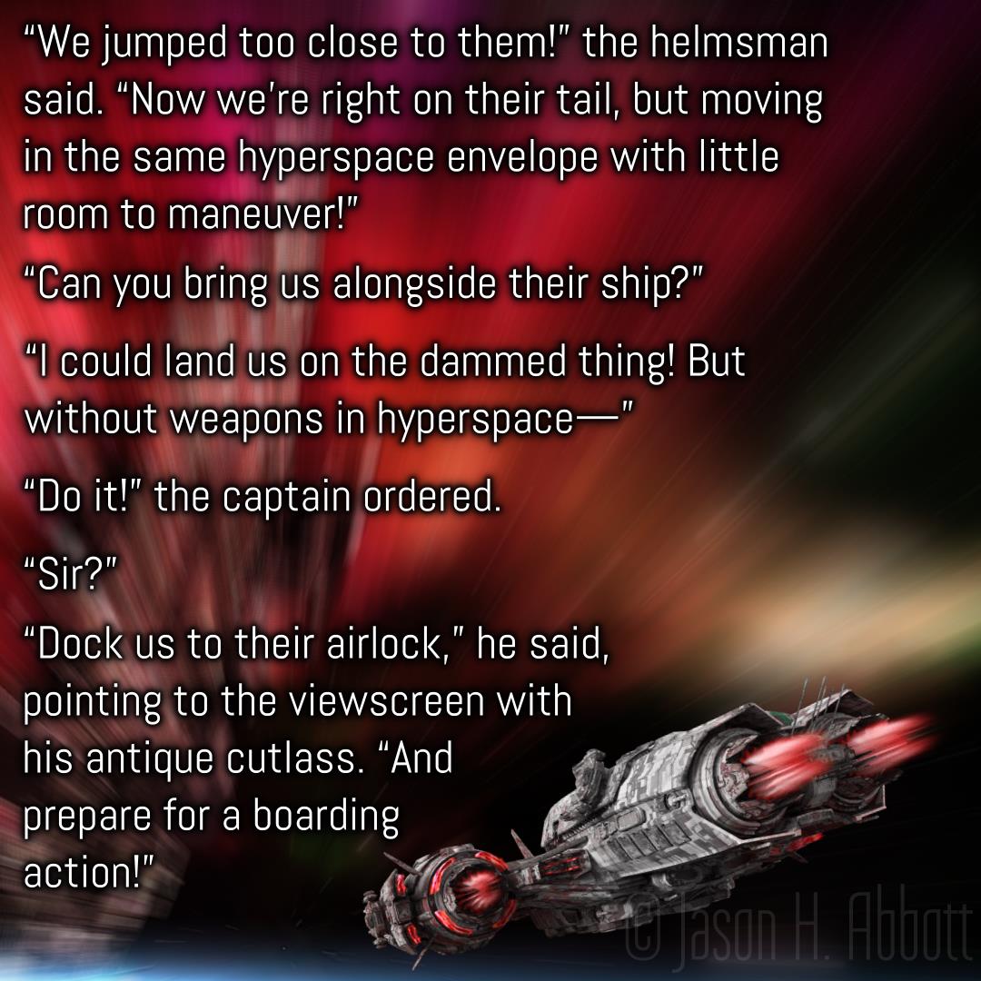 “Dock us to their airlock,” he said, pointing to the viewscreen with his antique cutlass. “And prepare for a boarding action!”