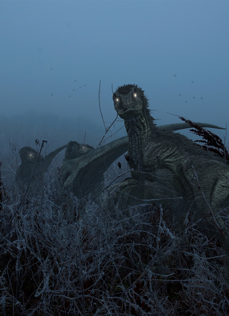Science Fiction Art: Utahraptor Ambush, by Herschel Hoffmeyer