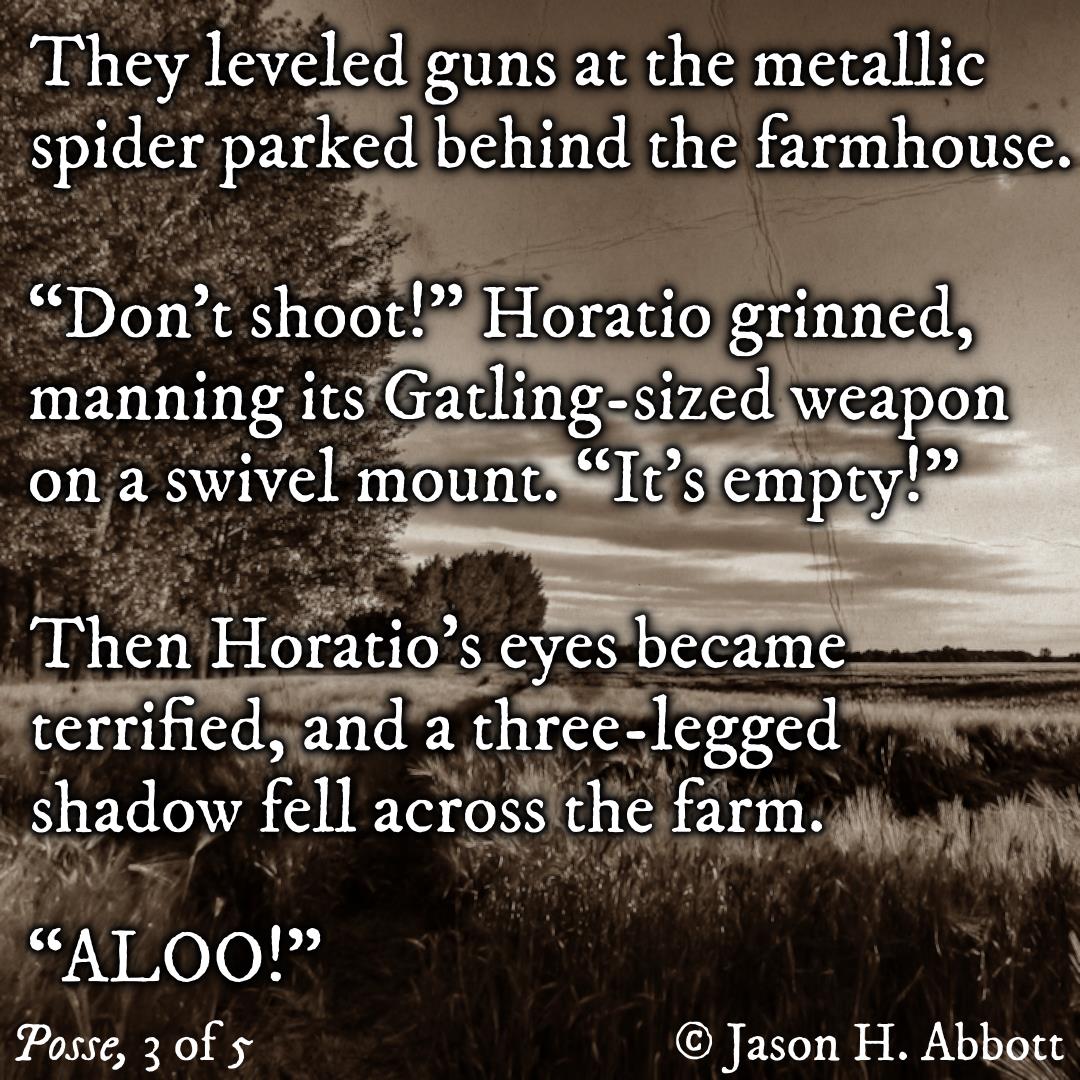 Then Horatio’s eyes became terrified, and a three-legged shadow fell across the farm.