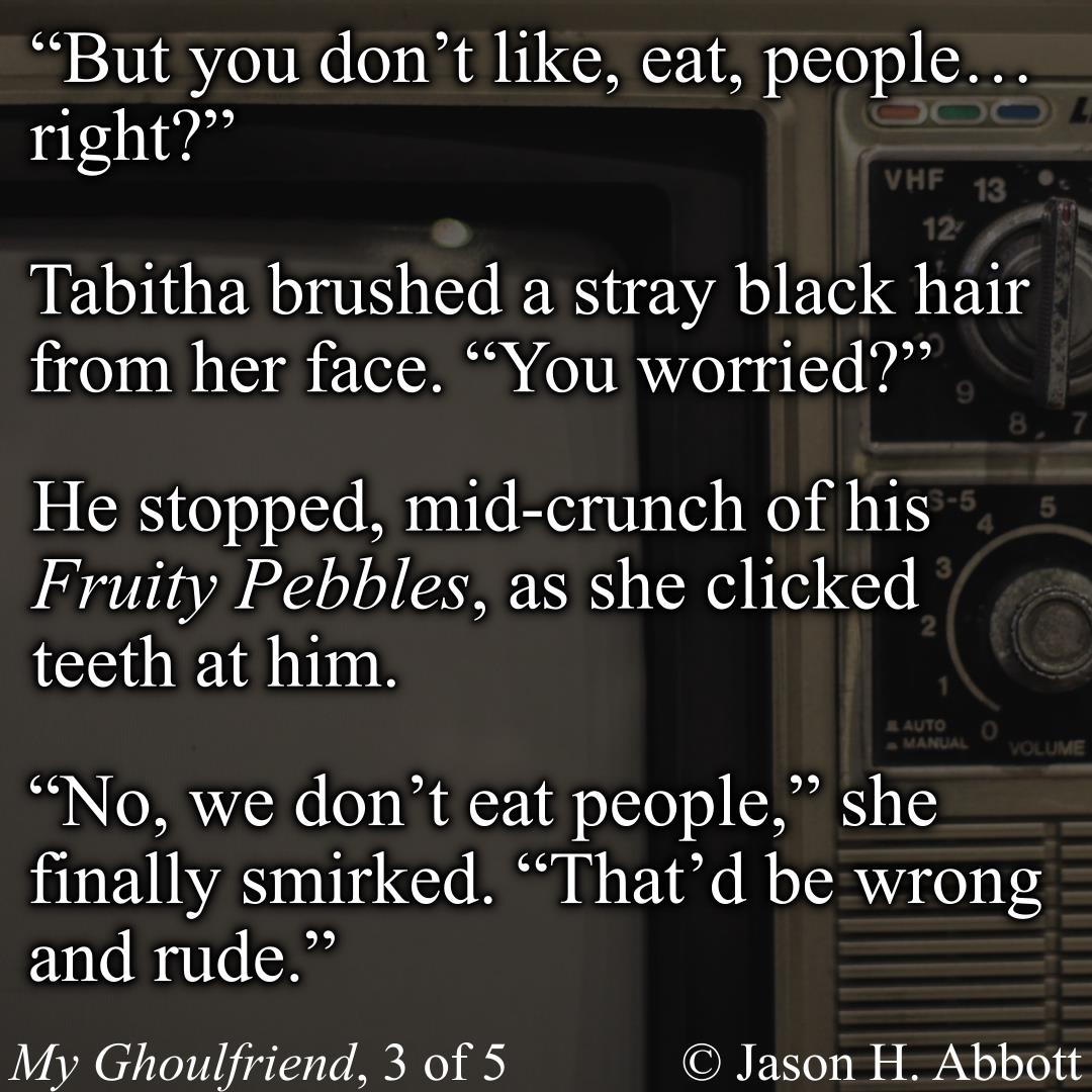 “No, we don’t eat people,” she finally smirked. “That’d be wrong and rude.”