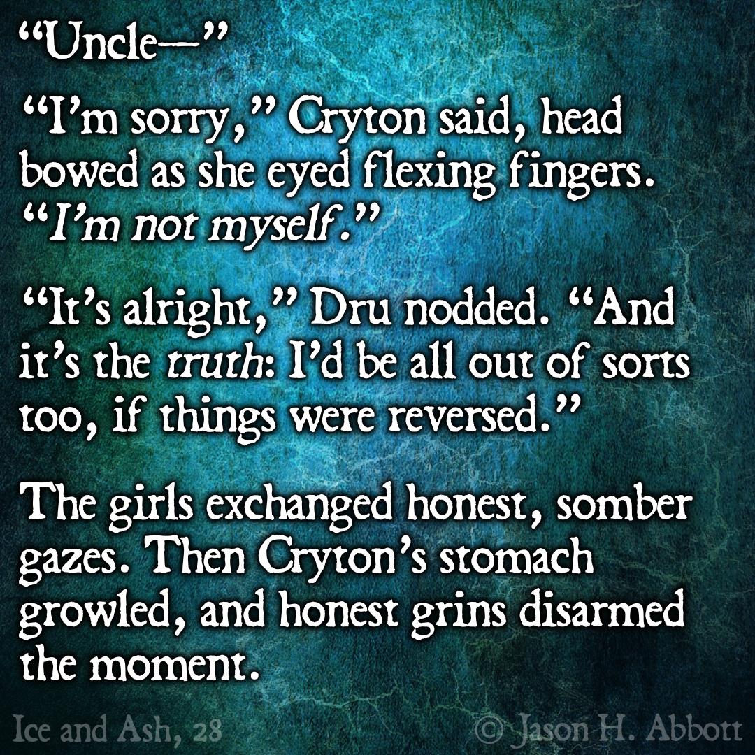 “I’m sorry,” Cryton said, head bowed as she eyed flexing fingers. “I’m not myself.”