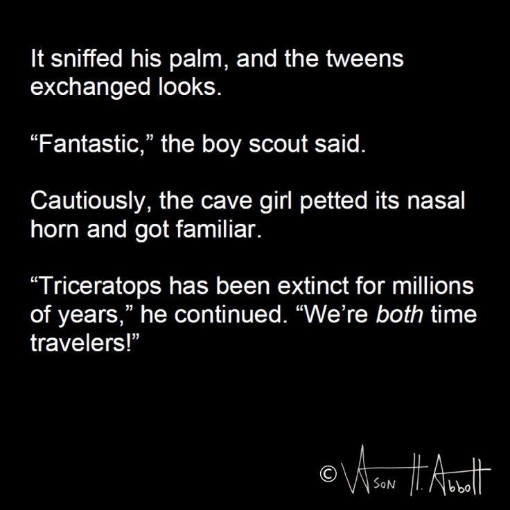 “Triceratops has been extinct for millions of years,” he continued. “We’re both time travelers!”