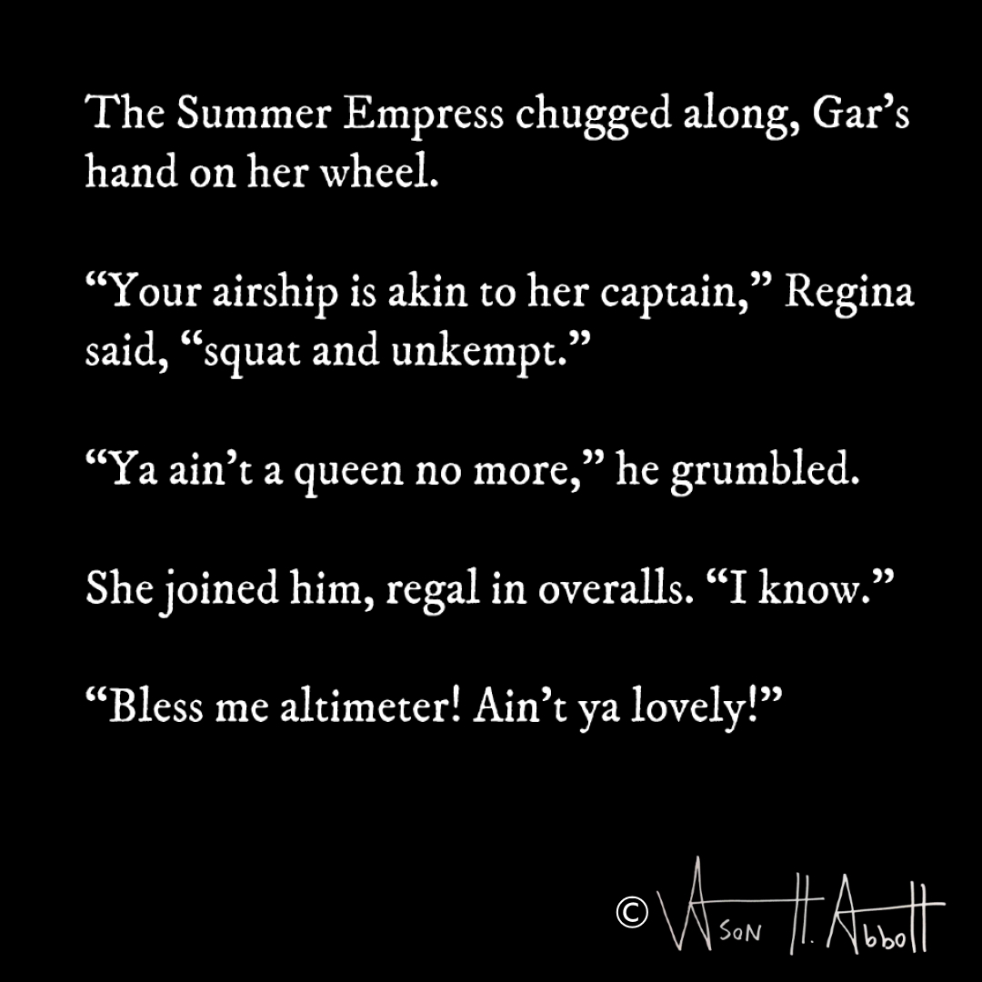 “Your airship is akin to her captain,” Regina said, “squat and unkempt.”