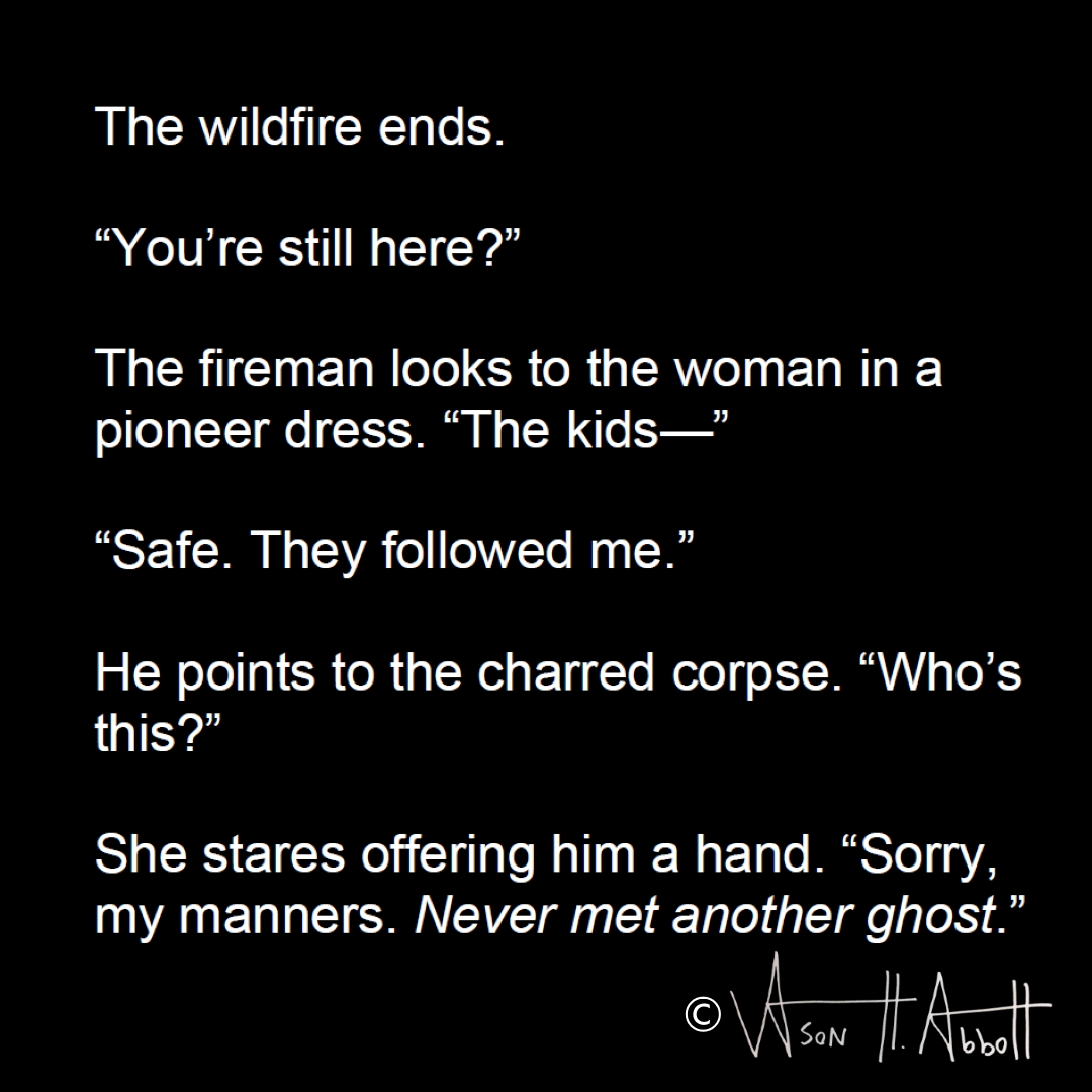She stares offering him a hand. “Sorry, my manners. Never met another ghost.”