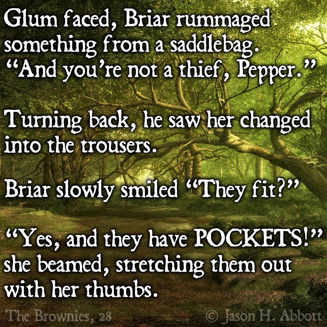 Glum faced, Briar rummaged something from a saddlebag. “And you’re not a thief, Pepper.”