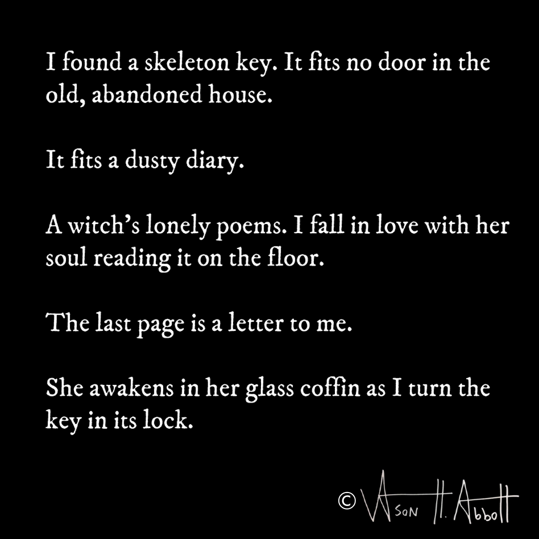 I found a skeleton key. It fits no door in the old, abandoned house.
