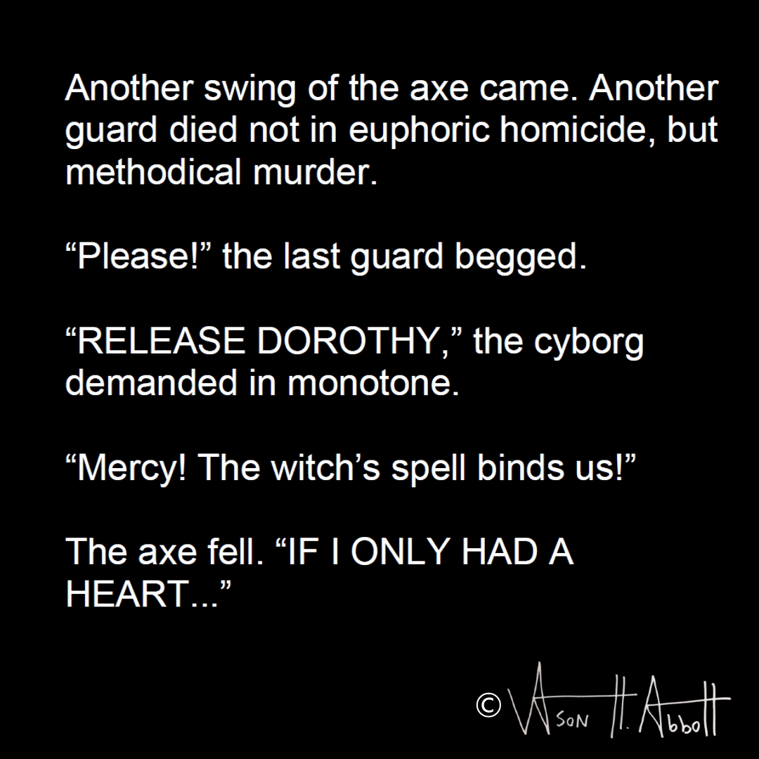 “RELEASE DOROTHY,” the cyborg demanded in monotone.