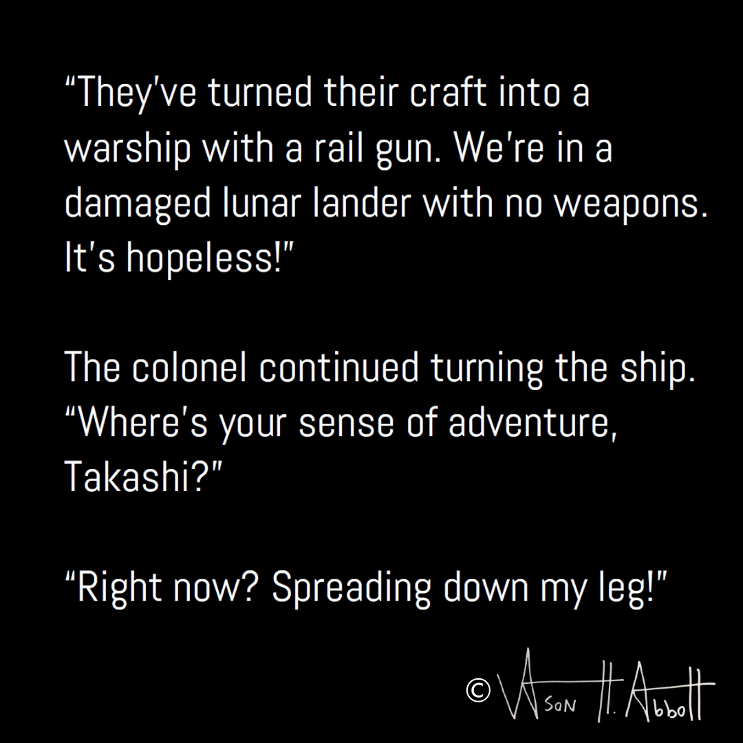“They’ve turned their craft into a warship with a rail gun. We’re in a damaged lunar lander with no weapons. It’s hopeless!”