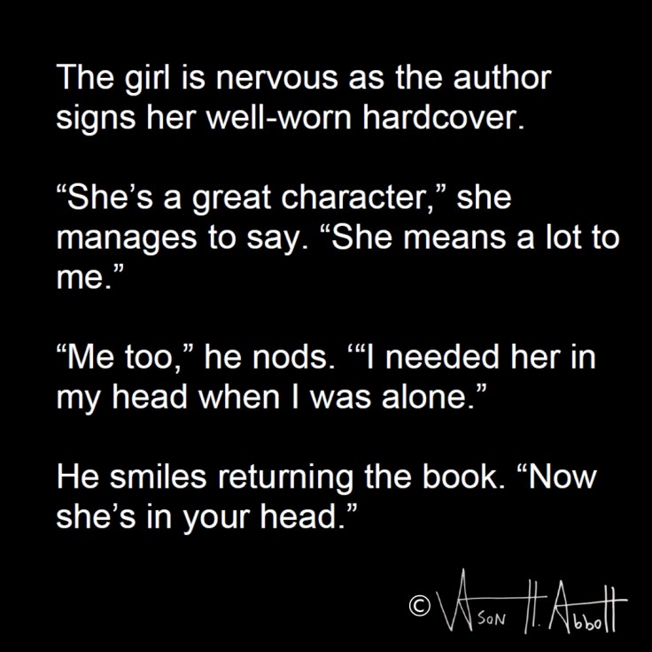 He smiles returning the book. “Now she’s in your head.”