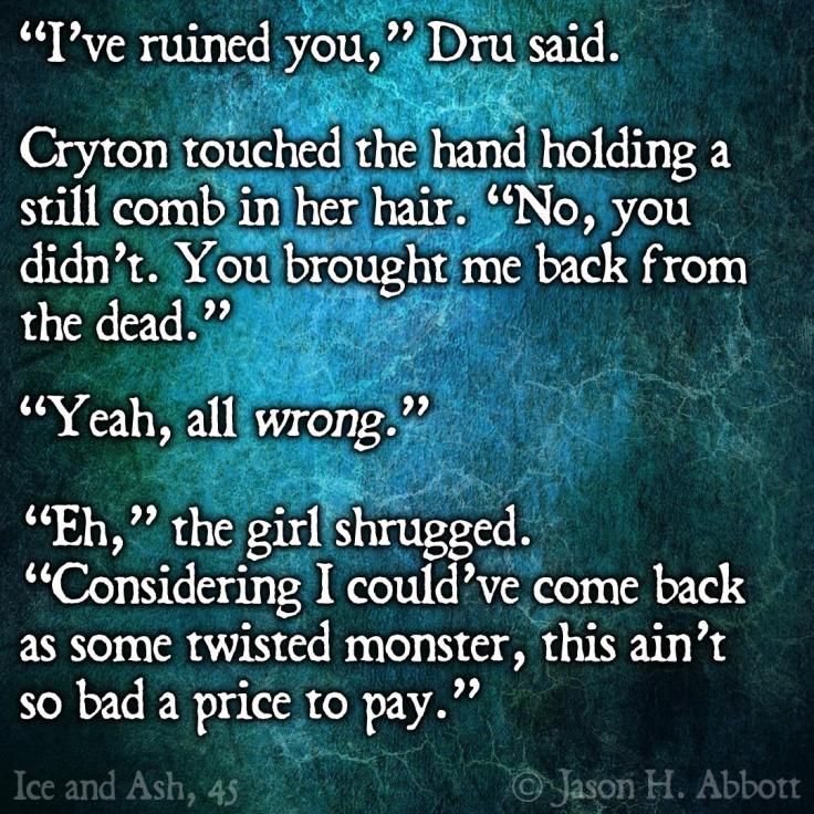 “Eh,” the girl shrugged. “Considering I could’ve come back as some twisted monster, this ain’t so bad a price to pay.”