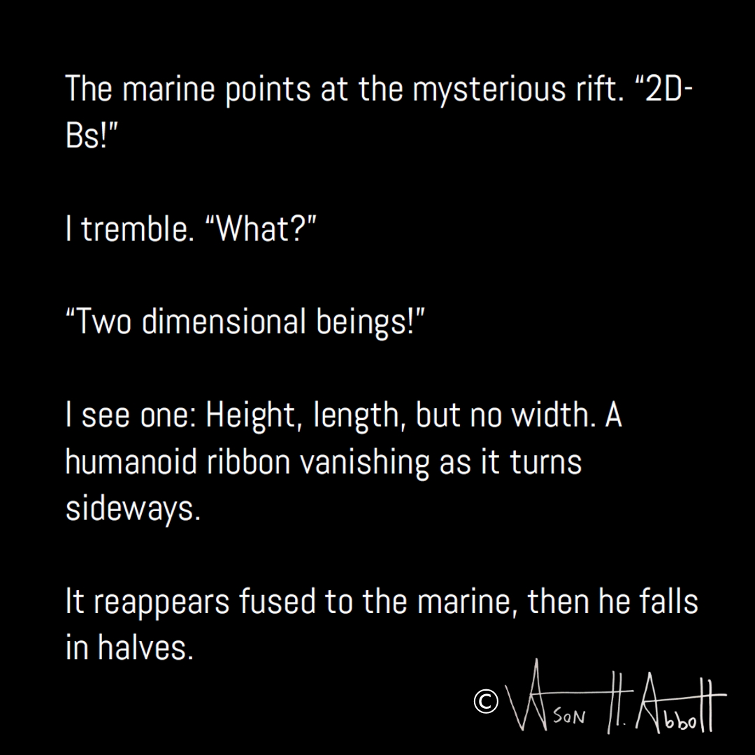 I see one: Height, length, but no width. A humanoid ribbon vanishing as it turns sideways.
