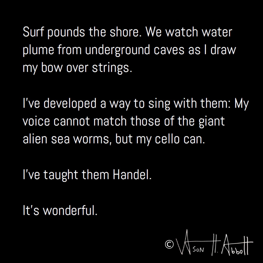 I’ve developed a way to sing with them: My voice cannot match those of the giant alien sea worms, but my cello can.
