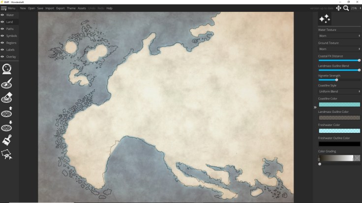 I’m not going to provide a tutorial on how to use the program, but you can find excellent walkthroughs and overviews here and here. There’s also an active Wonderdraft community on Reddit of discussions and map sharing. The subreddit is a great place to see the art made with the program and get inspired. A Wonderdraft Wiki exists as well, covering its technical aspects and how to set up customized changes to the program.