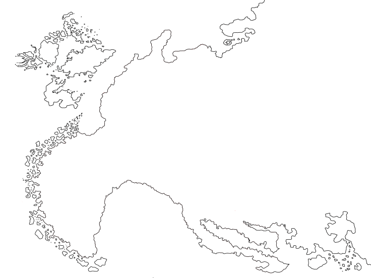 With the outline done, I zoomed-in and cropped the section with the Albine Isles, where my novelette The Brynesmark takes place, to create a regional map: