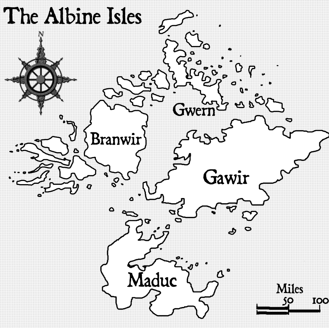 With the outline done, I zoomed-in and cropped the section with the Albine Isles, where my novelette The Brynesmark takes place, to create a regional map:
