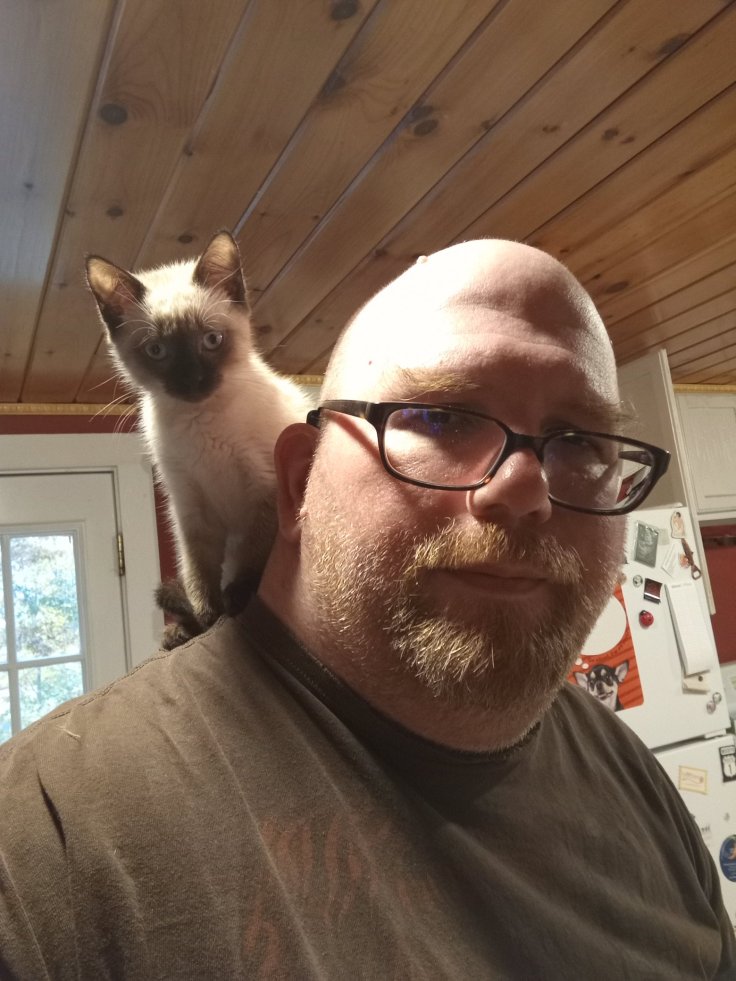 I’ll admit the sentiment is on target. I too have become Isis’ favorite climbing post, and she’s apparently a shoulder cat. I’m learning to write and ride my stationary bike with her up there. We do short walks between rooms too.