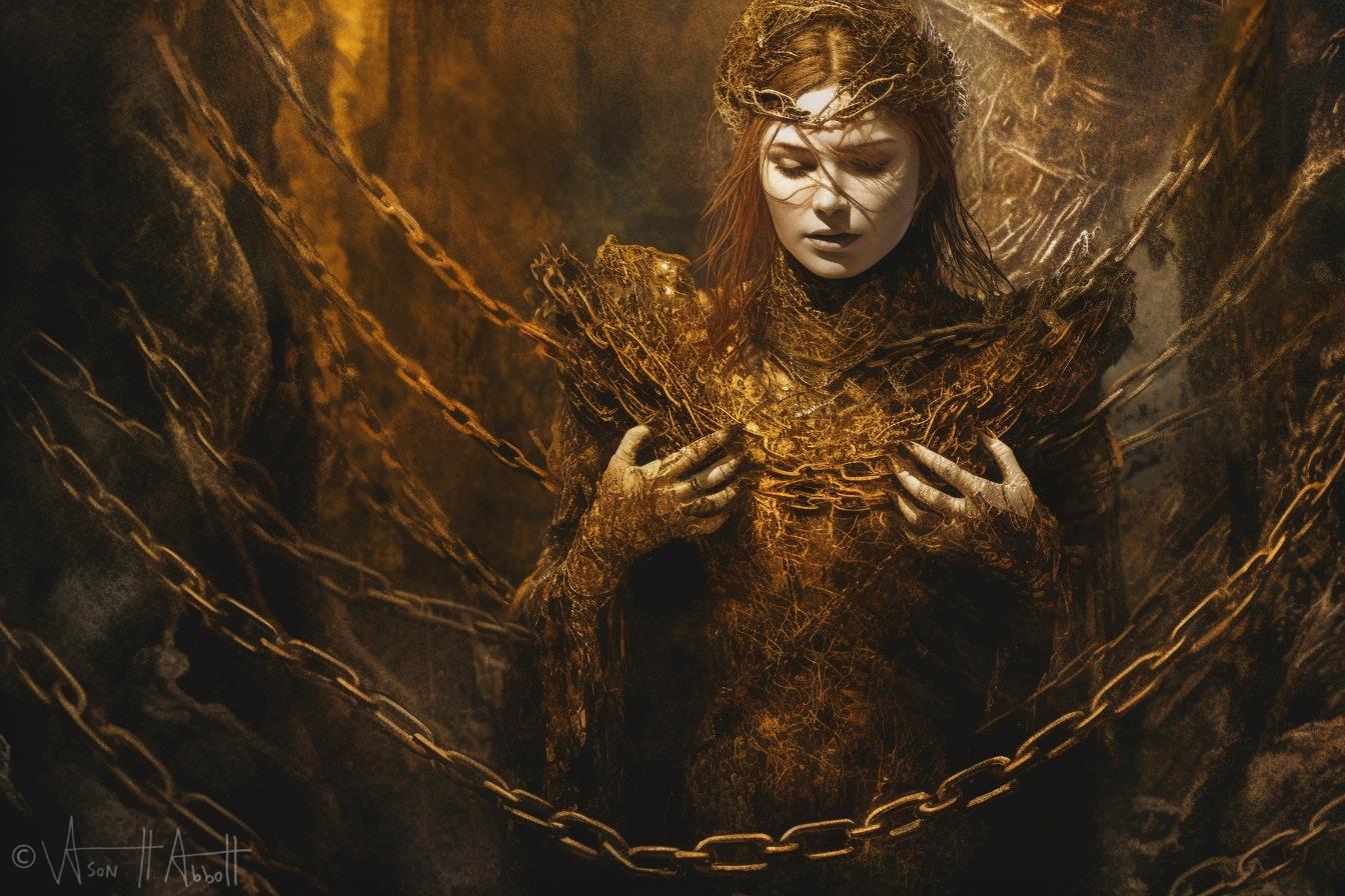 He stands amid a web of chains and ten-thousand keys. His bonds chime a susurrus symphony in the wind.